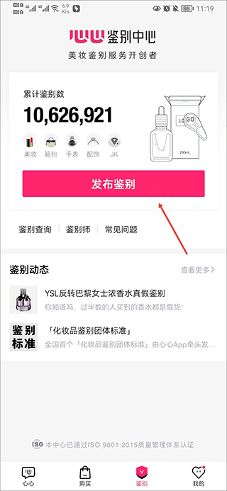 1、下载安装之后打开心心app,在鉴别界面中点击发布鉴别