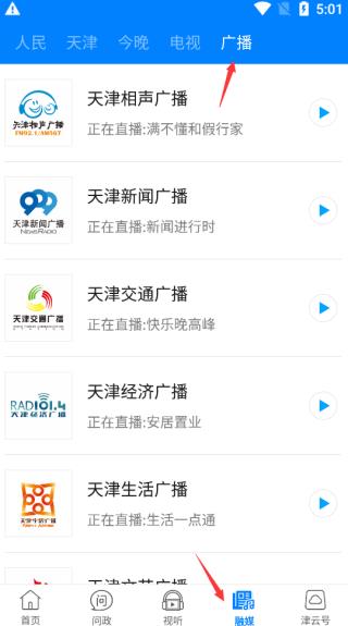 3、“直播”版块依托天津广播电视台的资源优势,提供10套电视节目、11套广播节目的全天候直播,为用户带来便捷、流畅、清晰的视听体验。
