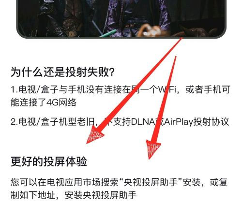 第三步,有的的电视设备这样操作后连接不了,我们向下滑,有一个“央视频投屏助手”的下载链接。