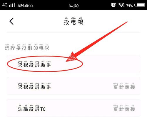 第六步,打开央视频APP点击投屏按钮,选择“央视频投屏助手”。