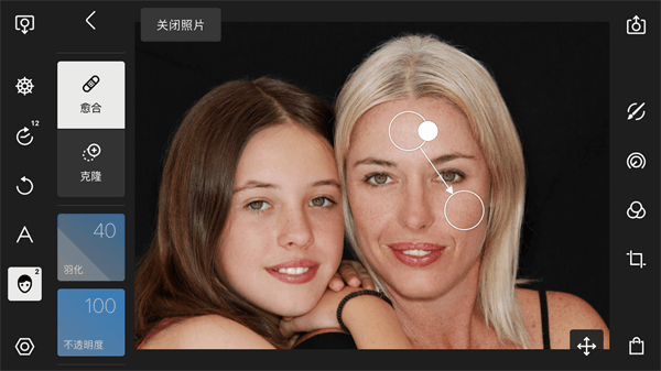 在愈合模式下,泼辣修图只会将“源区域”的纹理应用于“目标区域”,它不会影响“目标区域”的亮度,因此有较好的光影匹配度。 而在克隆模式下,泼辣修图是将整个“源区域”原封不动的复制到“目标区域”,它的覆盖效果更好,但是有时候容易出现光影不匹配的情况。我们需要根据实际的情况选择这两种模式。