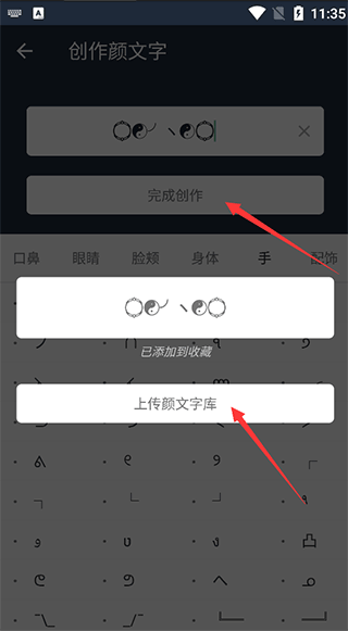 3、接下来编辑完后,选择完成创作,便可以“上传表情库里”