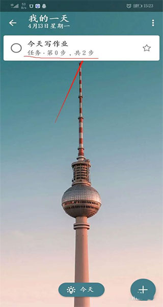 7、添加好以后,返回我的一天,可以看到提示信息已经显示此任务有2步。