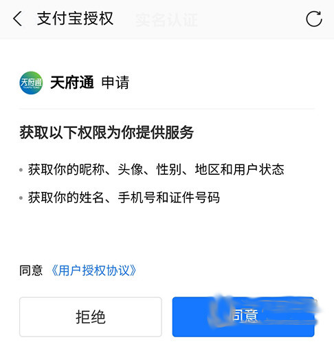 4、然后就会出现授权申请,点击同意支付宝授权,授权成功后即绑定支付宝并且完成实名认证。