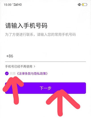 1、在本站下载并安装,然后打开app,我们就输入自己的手机号,这个手机号是你去接单的手机号喔,然后点击同意,点击下一步,我在图中已标记好了。