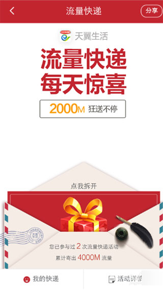 天翼生活怎么领取定向流量?