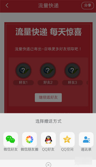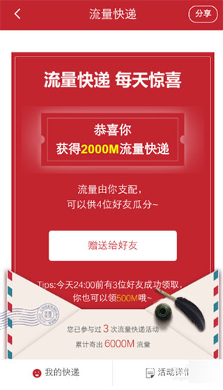 4、出现抽取的流量页面,点击“赠送给好友”。