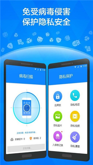 1、病毒查杀:能够对手机中的病毒、木马等恶意软件进行实时扫描和清理,保障手机的安全。2、隐私保护:可以防止用户个人隐私信息的泄露,包括通讯录、短信、图片等,提供文件加密、应用锁等功能。