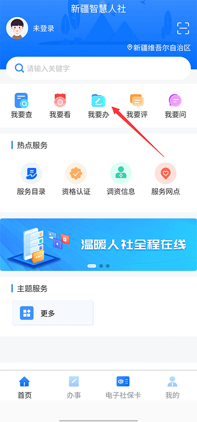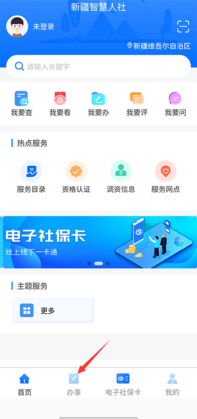 1、下载后打开进入新疆智慧人社app,点击办事模块