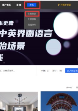 2、登陆成功后进入首页页面,点击发布-全景漫游按钮;