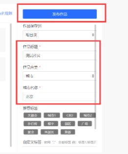 以上步骤操作完毕后,请您填写作品标题、作品分类等(红色*为必填项)点击发布作品即可。