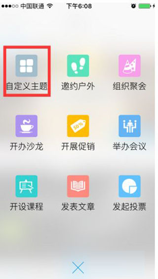 2、点击发布活动后,可以选择互动吧提供的活动主题类型;如果没有合适的,也可以选择自定义主题类型。