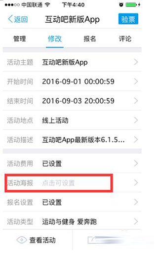 8、如果您的活动已经发布,可以在“我”-“主办方”-“管理活动”-“进行中”-“修改”中添加。如下图: