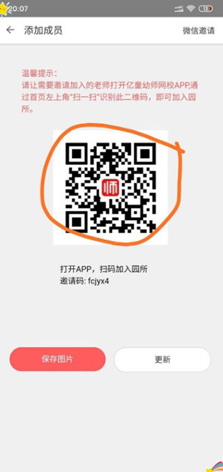 4、将邀请二维码发给老师并让老师将邀请二维码保存至手机