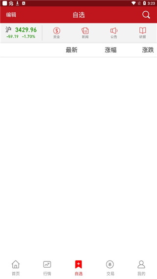 3、进入自选,这里可以选择自己需要购买的股票,还可以查看公告和新闻等资讯;