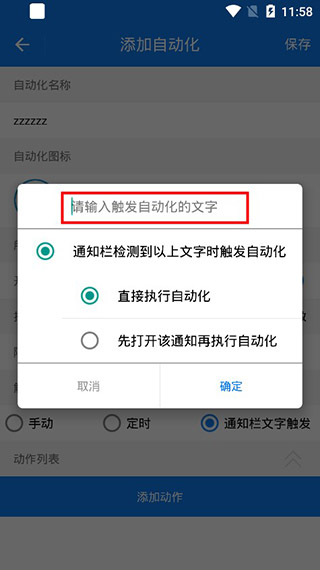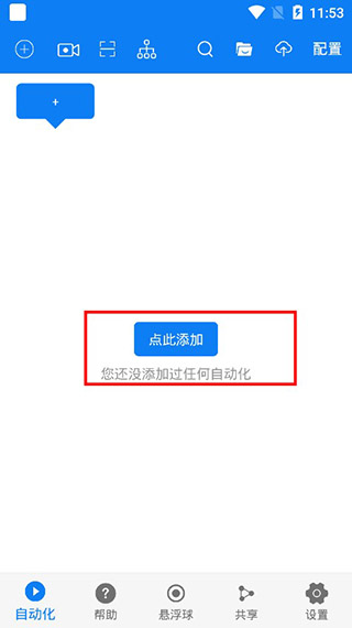7、点击添加动作,会出现类似瞄准镜的图标,点击进入设置自动化动作