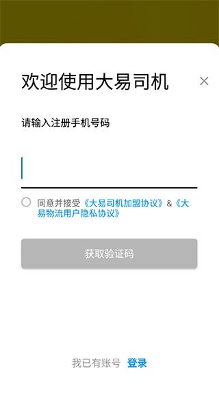 1、下载安装之后打开大易司机APP,注册并登录账号