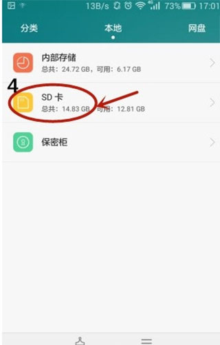 4、在手机上找到“视频管理”,然后选择“本地”的"SD卡";