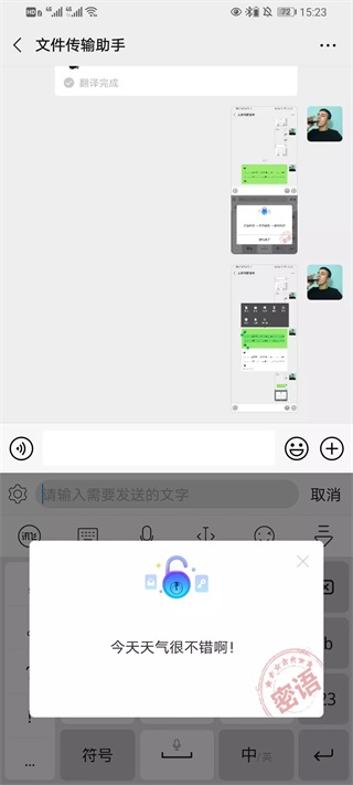 3、复制好密语后,我们只需要再次点击输入框,打开输入框讯飞输入法即可自动帮助我们进行解密(密语模式必须打开)。