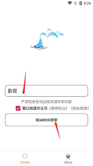 1、打开软件可以看到它很简洁的界面,但是在搜索框中输入搜索词就可以搜索你想要搜索的任何内容;