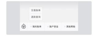 3、打开微信,找到"微信支付",菜单中"我的账单-交易账单"