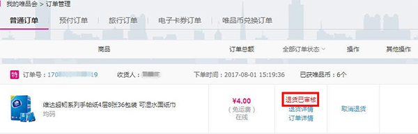 (2)上门揽退不收取运费,退款时不补唯品币。