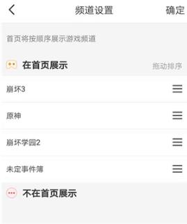 3、频道设置页面就是下面介个样子,舰长们可以拖动选择首页展示的频道。