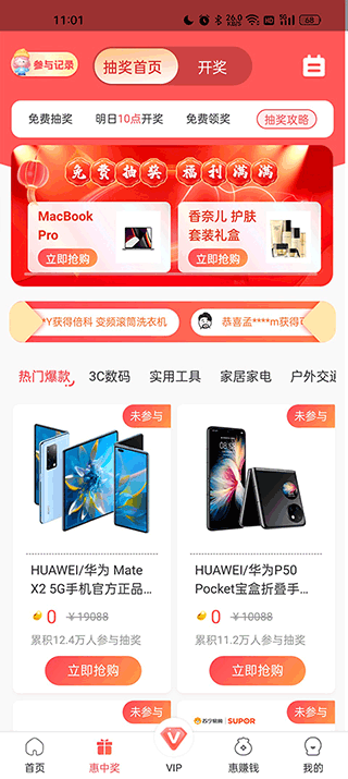 各种福利抽奖放送,非常有机会零元抢购大牌手机平板;