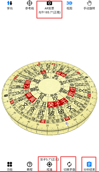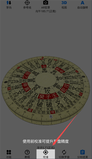 4、摆放罗盘后一键分析八宅布局、九宫飞星、流年,自动辨别天医、生气、延年、伏位、五鬼、六煞、祸害、绝命等方位。点击“VR实景”后自动为真实场景添加方位属性标签。