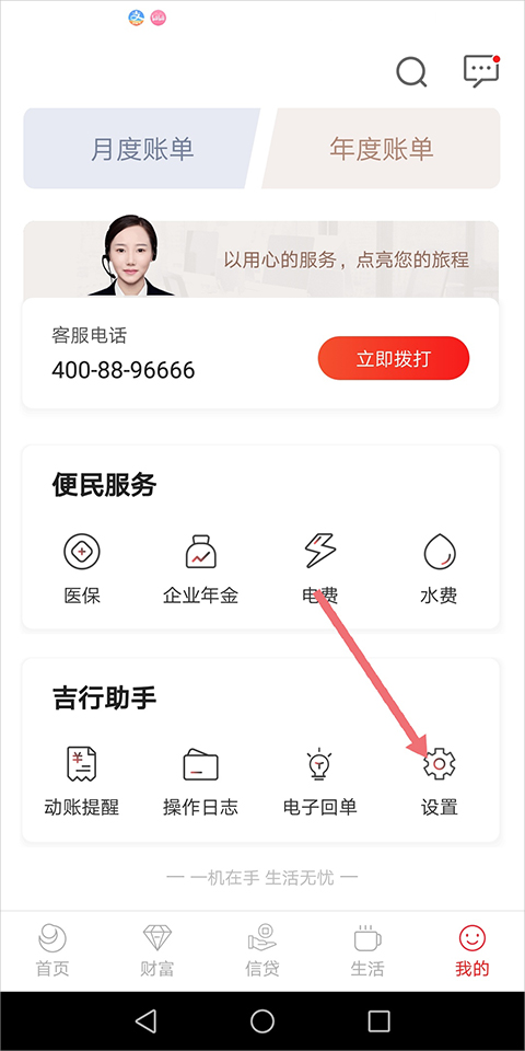 1、下载安装之后打开吉林银行APP,进入我的页面中点击【设置】