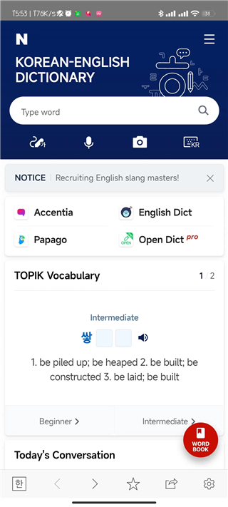 在韩国极具代表性的搜索网站naver.com中提供的词典app,包含正确且丰富的内容。