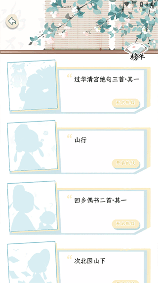 2、解析界面,翻动书页可以选择诗词题目,点击可进入相关动画解析