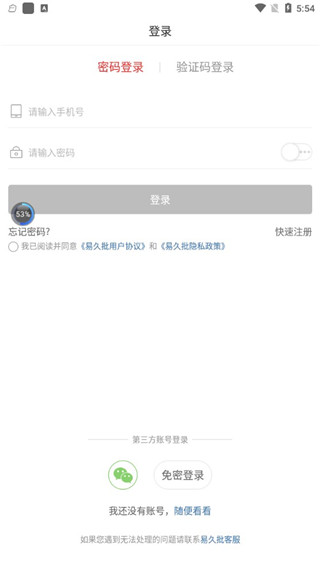 1、首先在本站下载安装易久批app,然后点击进入账号登录页面,点击快速注册。