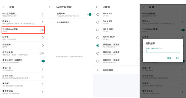 3、除了Xposed框架和root权限外,还支持分辨率和屏幕刷新率的修改,还有趣味的画中画模式;