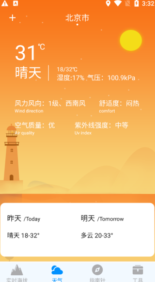 1、海拔高度表:实时测量海拔,无需网络可以准确测量所在地的海拔和经纬度;2、指南针:内置指南针功能,让你更快的获取所在地的方向以及经纬度信息;