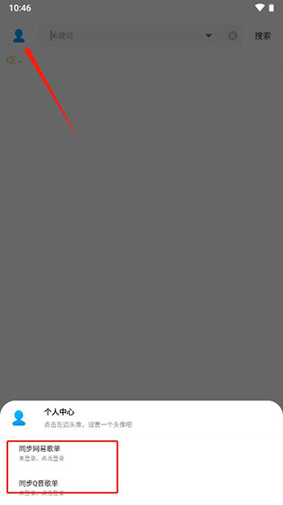 1、点击左上角进入个人中心,在下面就可以看到同步网易歌单和Q音歌单;