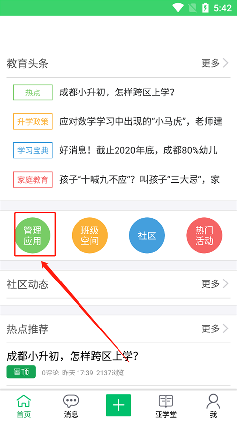 1、下载安装之后打开智慧云人人通APP,点击进入“应用管理”功能界面。