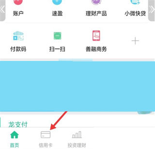 3、登录完成后,点击箭头所指的“信用卡”。