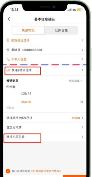 点击“快递/物流选择”选择快递物流公司;可点击“礼品包装”自行选择外包装。完成后点击提交订单即可。