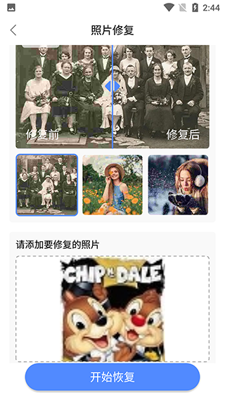 4、回到首页,点击照片修复既可以将模糊像素低的照片通过AI还原成高清图片。