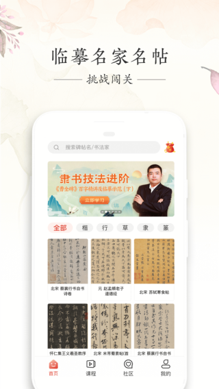 2、我们可以选择【临摹名家名帖】,跟着练习