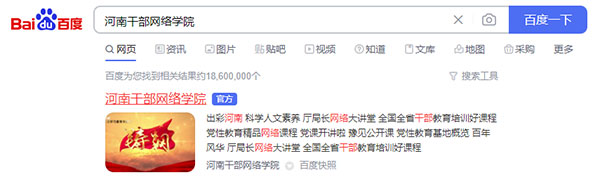 1、打开电脑浏览器,百度搜索“河南省干部网络学院”登入个人学习账号