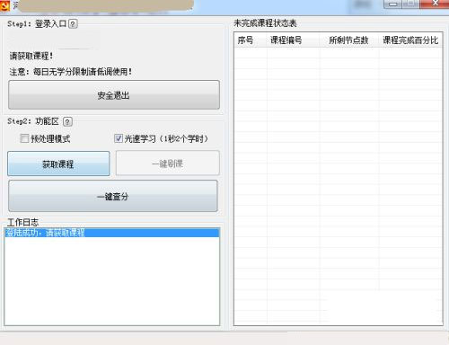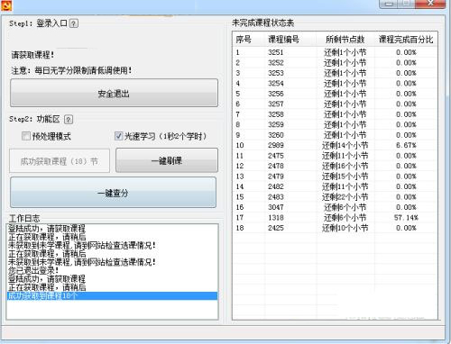 5、点击 “获取课程”,“一键刷课”就会开始光速刷课时,只需要一小会儿的功夫,就能将所选的课程学习完毕
