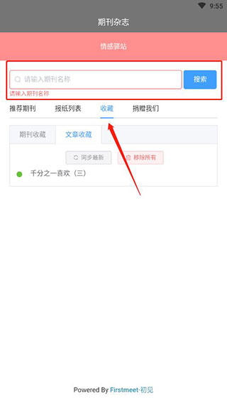 7、可以输入期刊名称查找期刊,也可以将喜欢的期刊或者是文章添加至收藏中进入观看。