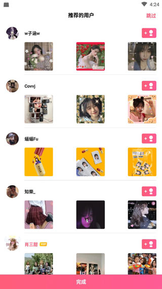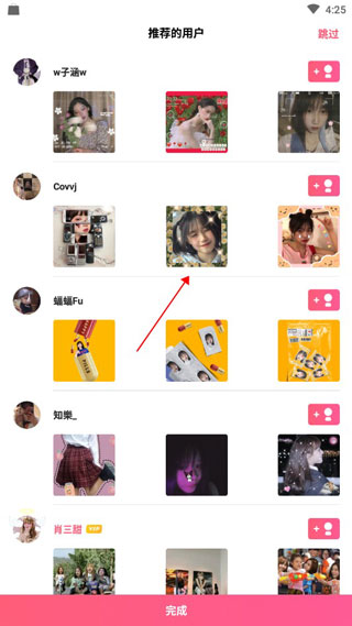 1、下载安装后打开微咔Wecut,进入软件首页之后APP会自动为大家推荐用户