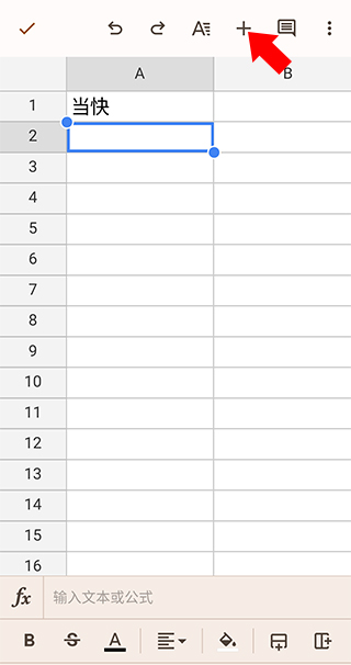 1、我们点击想要添加图标的单元格,之后点击上方工具栏中的“+”号