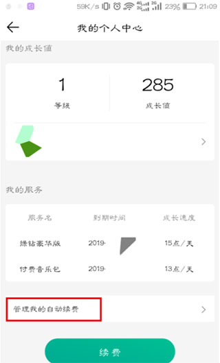 3、来到我的个人中心界面之后就能够看到【管理我的自动续费】