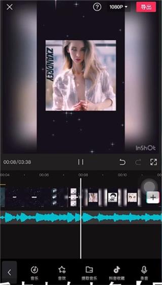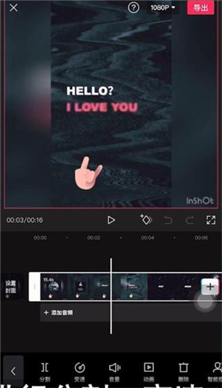 4、点击【音频】可以添加音乐、音效等,所有内容编辑完成之后我们只需要点击右上角的【导出】就能完成作品的制作