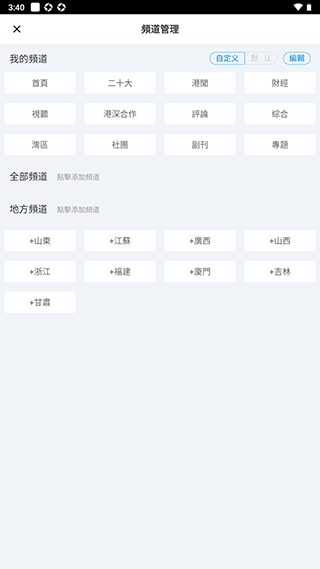 2、我们可以点击首页右上角的“三”进行频道的选择