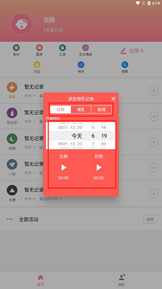 7、支持多宝宝记录管理,可同时记录多个宝宝的日常活动。